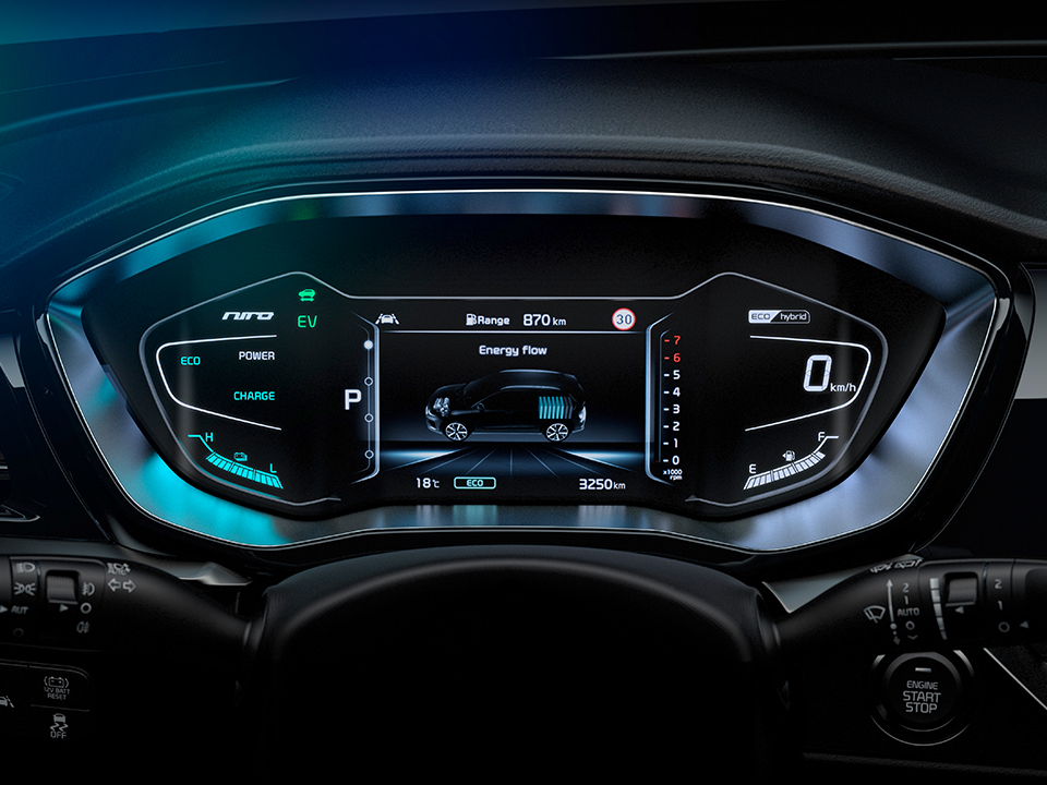 Der Niro wirkt nun deutlich moderner, besitzt ein größeres Display (10,25 Zoll) mit Touchfunktion. Dort lässt sich unter anderem aufzeigen, wie viel der Akku und Benziner verbrauchen. Direkt darunter sind die bekannten Direktwahltasten angebracht. Das Cockpit ist komplett digital und enthält unter anderem weitere Angaben zum Batteriestand. An den Platzverhältnissen hat sich beim 4,35 Meter langen 1,5-Tonner nichts geändert. Äußerlich orientiert sich der Viertürer nun durch sein Doppelpfeil-Tagfahrlicht und seine modifizierten Stoßfänger etwas stärker am Elektrobruder E-Niro.